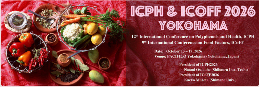 2026年10月13日(火)〜10月17日(土)に、パシフィコ横浜において、The 9th International Conference on Food Factors (ICoFF2026)ならびにThe 12th International Conference on Polyphenols and Health 2019 (ICPH2026)を合同で開催する運びとなりました。